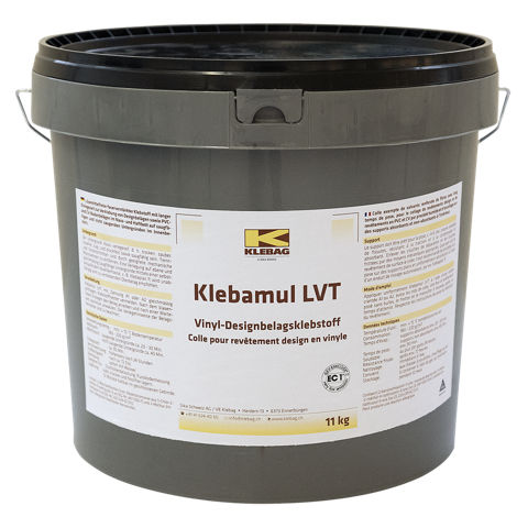 Colle renforcée par des fibres, sans solvant, avec un long temps de pose pour le collage de revêtements de sol en vinyle ainsi que de revêtements de sol en PVC et CV en pose humide et adhésive sur des supports absorbants et non absorbants à l'intérieur.